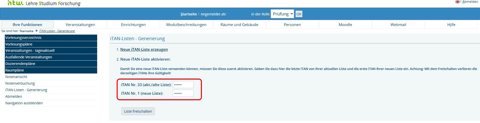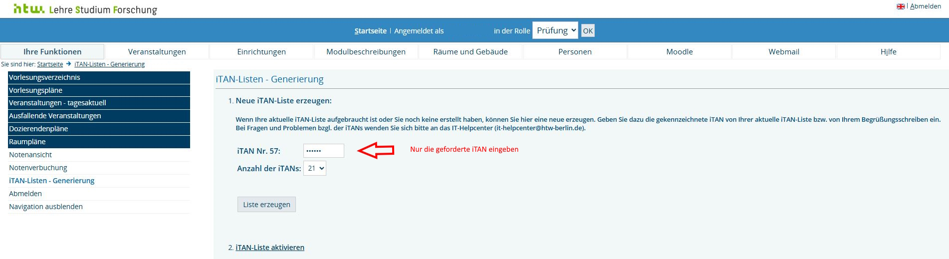 Achten Sie hierbei bitte darauf, dass die auf der Seite geforderte iTAN Nummer zum Erzeugen einer neuen Liste aus Ihrer aktuellen Liste entnommen werden muss.