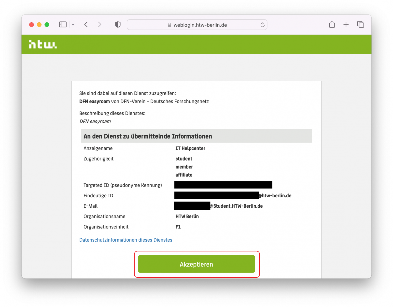 Schritt 2: easyroam.de aufrufen und HTW Berlin eingeben
