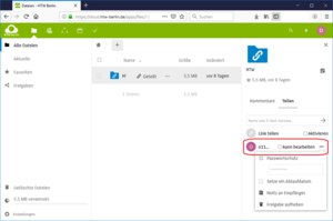 After entering the e-mail address, you can still set sharing options. In addition to the "can edit" function, there are also other sharing options available via the three items "...". For example, you can enter the duration of the share (expiration date) or a new password for the share.