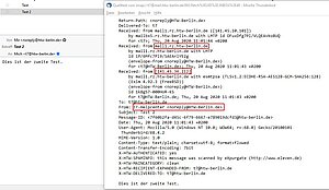 To see where an e-mail actually comes from, you can display the header of the e-mail as part of the source text. Here you can see the e-mail server, the source e-mail program and the source e-mail address.