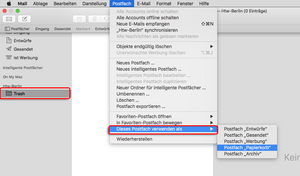 Select the appropriate mail folder, e.g. "Trash" and then click on "Mailbox" in the menu → "Use this mailbox as" and select the appropriate mailbox, e.g. "Trash".